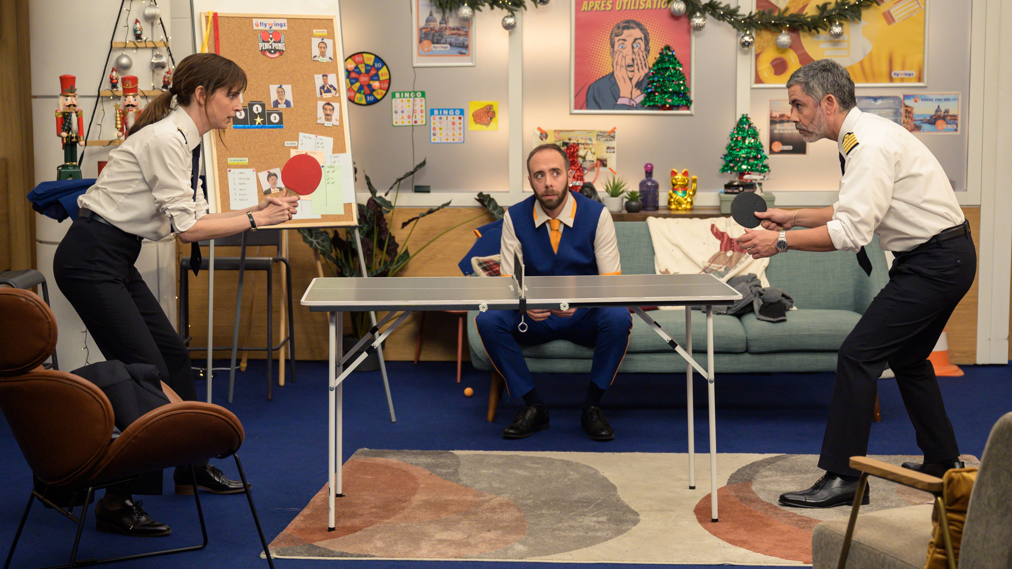 Une tempête de neige paralyse tout l’aéroport. Jack veut profiter de ce moment de creux pour renégocier son salaire à la hausse avec Nikki. Jack est payé 1500 euros par mois, Armelle est outrée et propose de l’accompagner sous sa casquette de déléguée syndicale. Jack n’imagine pas qu’Armelle va en fait vouloir l’embarquer dans son combat pour la décroissance. Dans la salle de repos débarque Chris, l’ancien commandant de Flywingz, un type arrogant et lourd, qui propose de passer le temps en remettant son titre de meilleur joueur de ping-pong en jeu face à Charlie qui ne résiste pas au défi.